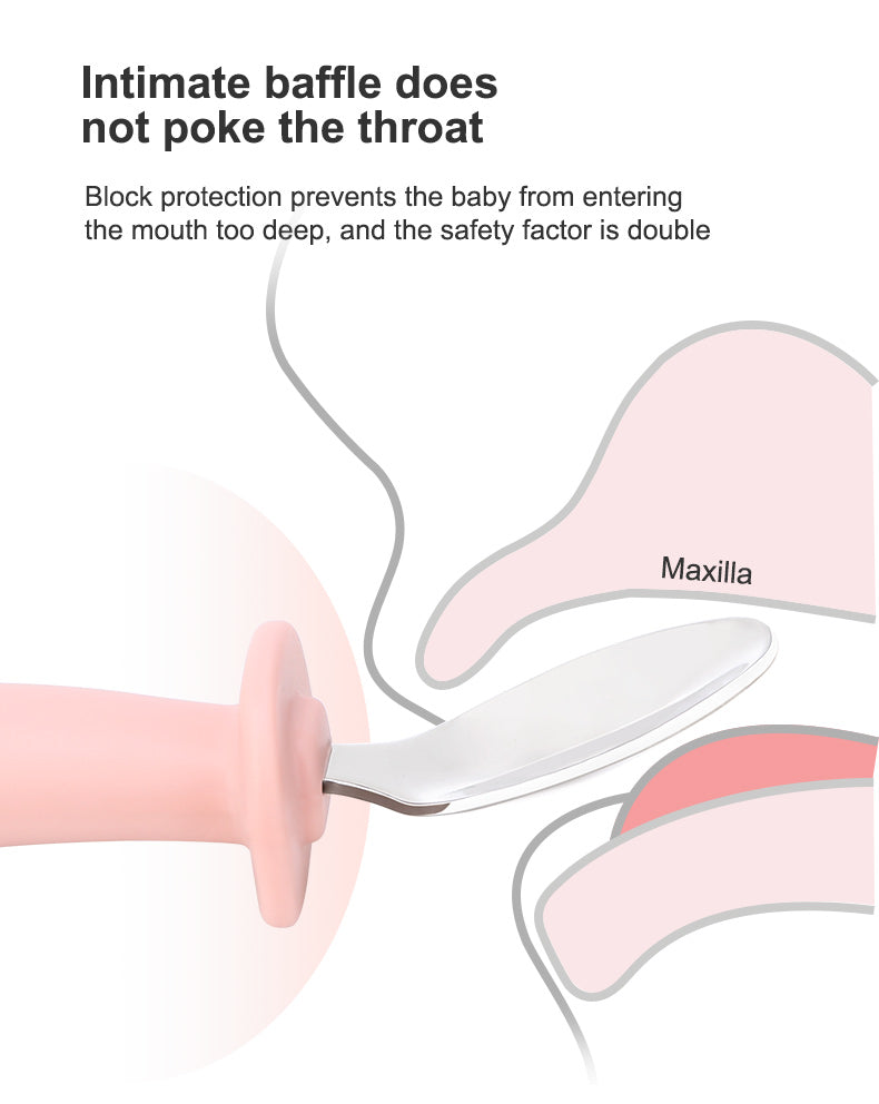 Soft-tip silicone spoon is gentle on teething gums and perfect for first bites